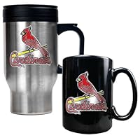 MLB St. Louis Cardinals Stainless Steel Travel Mug & Black Ceramic Mug Set